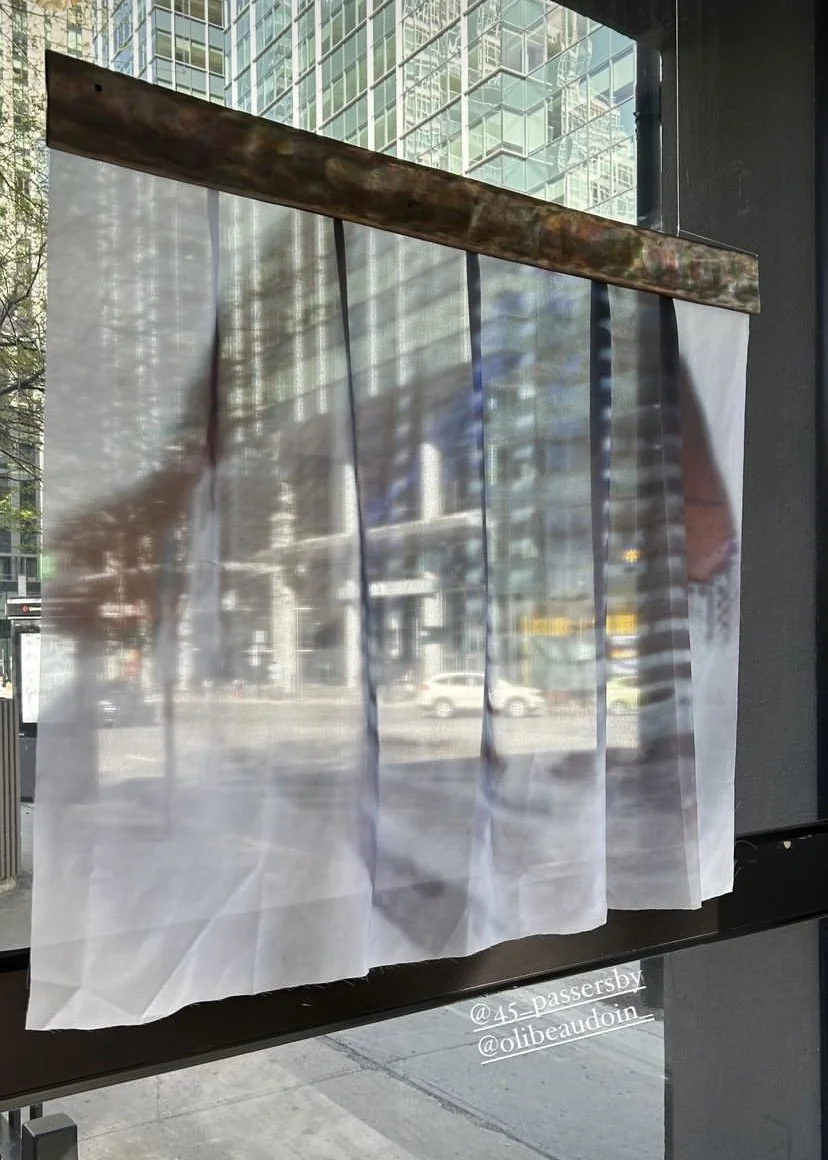 L’installation temporaire est composée de structures longilignes en pin rouge et en cuivre disposées telle une ondulation se propageant sur le versant adjacent à la tour des Aiguilleurs. À sa cime se trouve une tubulure en cuivre qui permet une fine oscillation activée par les vibrations du terrain, du vent et des mouvements divers du quartier. Cette oscillation est enregistrée grâce à plusieurs caméras sténopés insérées dans l’installation.